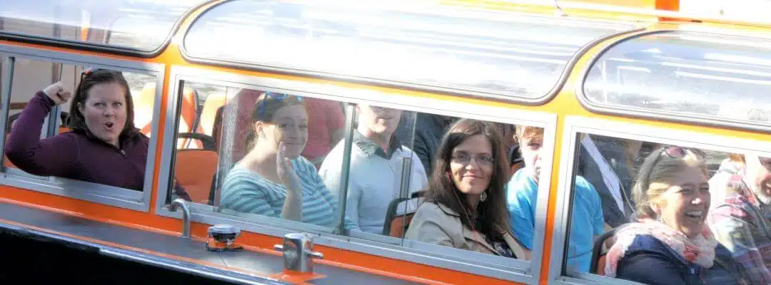 Eine Grachtenrundfahrt in Amsterdam auf den Grachten im grossen Grachtenboot mit Kapitän