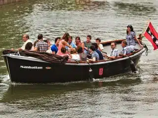Eine Grachtentour in Amsterdam in einem offenen Boot machen Sie mit der Manhattan