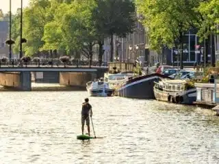 Een goede stabiele SUP huren in Amsterdam doe je bij SUP Rental Amsterdam. Lekker alleen of met wat vrienden een uurtje of twee peddelen over de Amstel en de Amsterdamse grachten. Als je nog nooit eerder op een SUP hebt gestaan, krijg je voor vertrek een instructie. Je kunt je spullen opslaan bij de opstapplek naast de Berlagebrug.